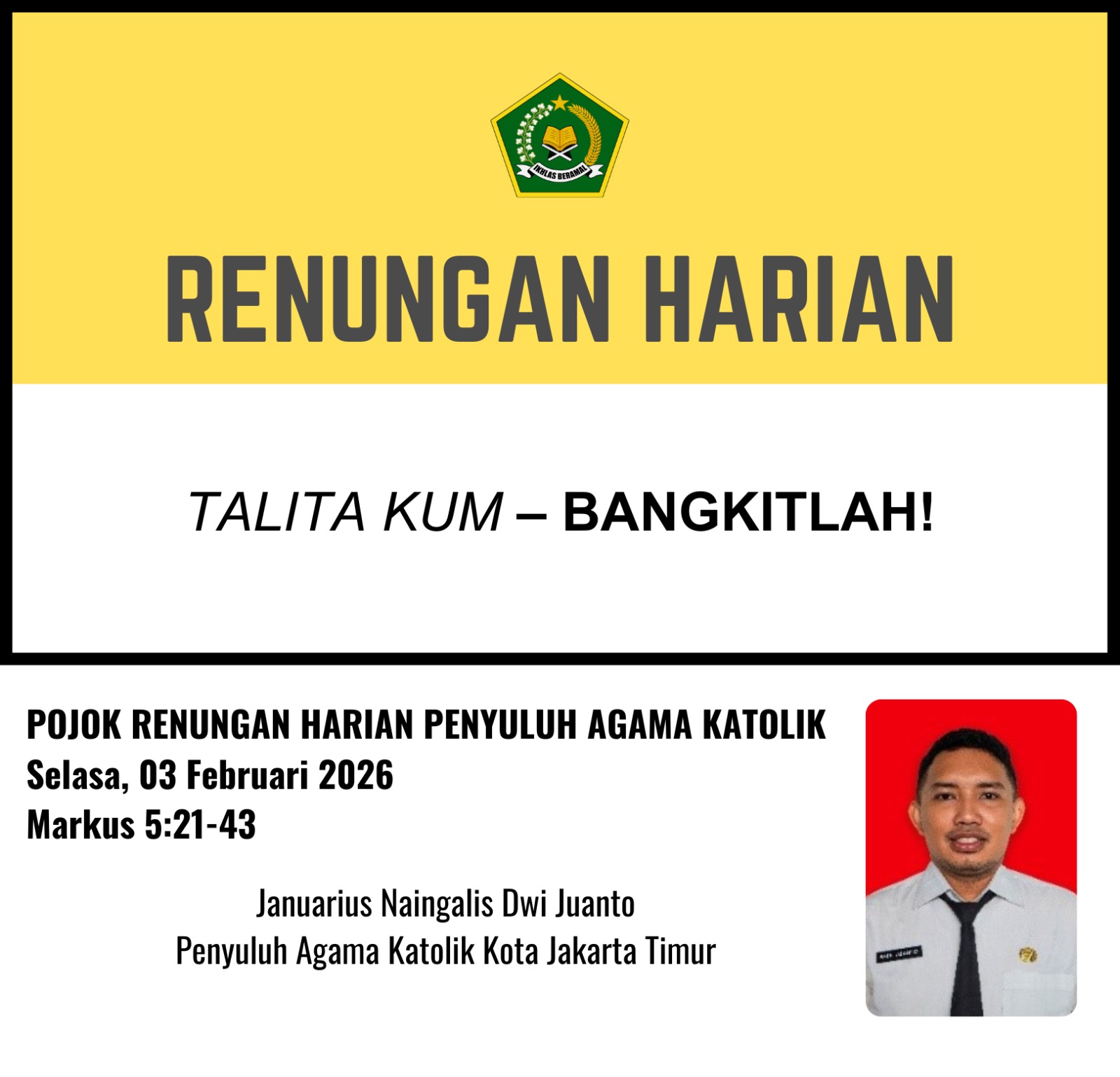 2026-02-03 11:03:00 Berita TerbaruDirektorat Jenderal Bimbingan Masyarakat Katolik adalah unsur pelaksana yang berada di bawah dan bertanggung jawab kepada Menteri Agama. Direktorat Jenderal Bimbingan Masyarakat Katolik dipimpin oleh seorang Direktur Jenderal. Direktorat Jenderal Bimbingan Masyarakat Katolik mempunyai tugas menyelenggarakan perumusan dan pelaksanaan kebijakan di bidang bimbingan masyarakat Katolik sesuai dengan ketentuan peraturan perundang-undangan.